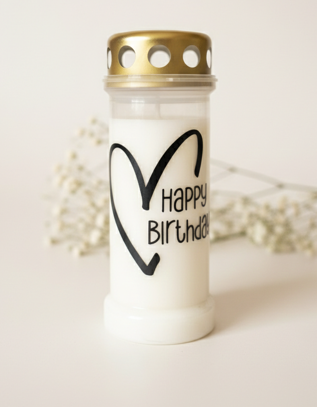 Grabkerze | Happy Birthday | 70h Brenndauer