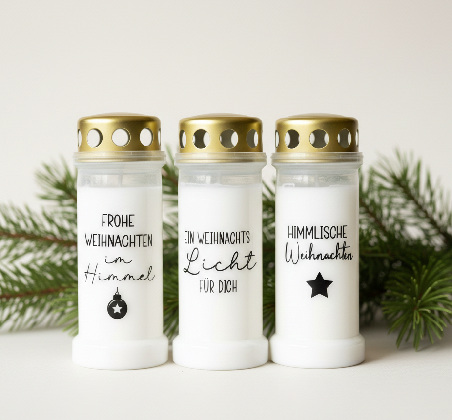 Unser größtes Herzensthema sind Gedenkkerzen und Trauerartikel. Wir fertigen sie individuell, mit viel Liebe und Respekt – weil wir selbst wissen, wie schwer es ist, einen geliebten Menschen zu verlieren. Aus eigenen Schicksalsschlägen ist der Wunsch entstanden, etwas zu schaffen, das mehr ist als ein Massenprodukt. Etwas Persönliches. Etwas, das Worte trägt, wenn sie fehlen. Denn oft gibt es noch so viel zu sagen – und genau das möchten wir mit unseren individuellen Grab- und Gedenkkerzen möglich machen. Gleichzeitig gibt es im Leben auch viele schöne, besondere Anlässe. Geburt, Hochzeit, Einzug, Geburtstag – oder einfach ein kleines „Danke“. Auch hier begleiten wir dich gerne mit liebevoll gestalteten, personalisierten Geschenkideen, die von Herzen kommen und lange in Erinnerung bleiben.