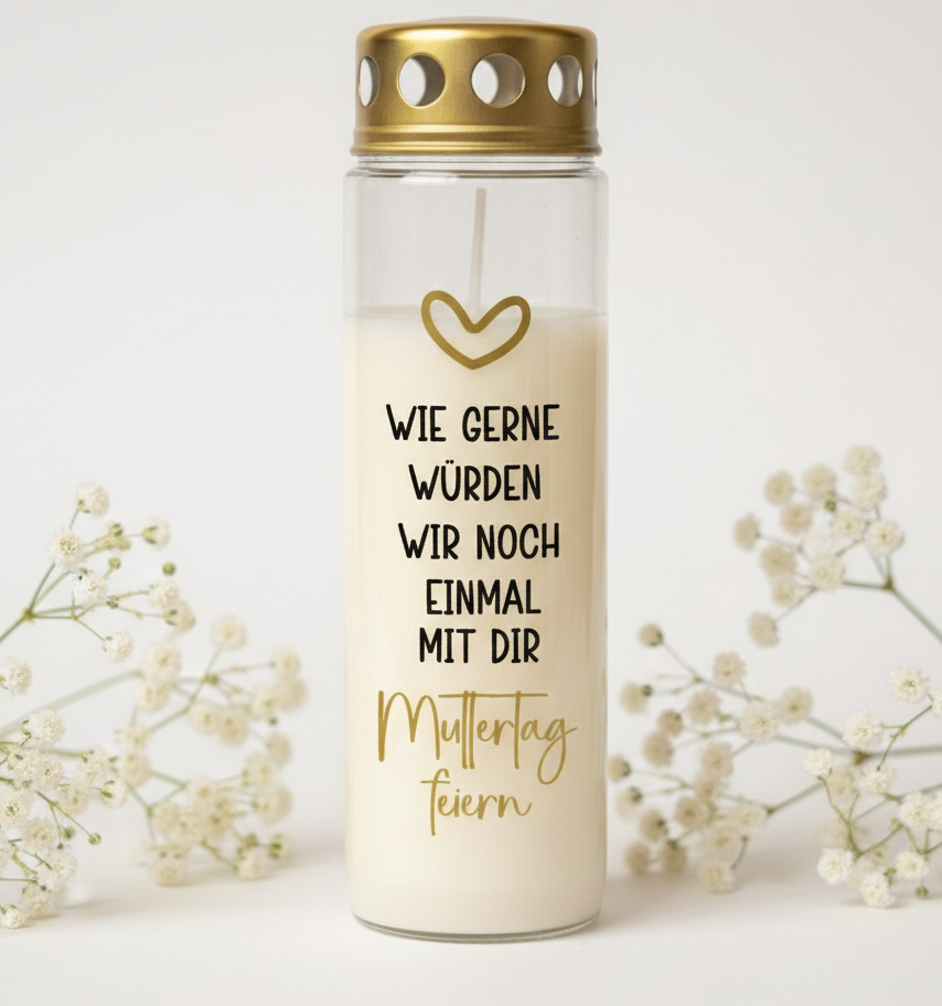 Unser größtes Herzensthema sind Gedenkkerzen und Trauerartikel. Wir fertigen sie individuell, mit viel Liebe und Respekt – weil wir selbst wissen, wie schwer es ist, einen geliebten Menschen zu verlieren. Aus eigenen Schicksalsschlägen ist der Wunsch entstanden, etwas zu schaffen, das mehr ist als ein Massenprodukt. Etwas Persönliches. Etwas, das Worte trägt, wenn sie fehlen. Denn oft gibt es noch so viel zu sagen – und genau das möchten wir mit unseren individuellen Grab- und Gedenkkerzen möglich machen. Gleichzeitig gibt es im Leben auch viele schöne, besondere Anlässe. Geburt, Hochzeit, Einzug, Geburtstag – oder einfach ein kleines „Danke“. Auch hier begleiten wir dich gerne mit liebevoll gestalteten, personalisierten Geschenkideen, die von Herzen kommen und lange in Erinnerung bleiben.